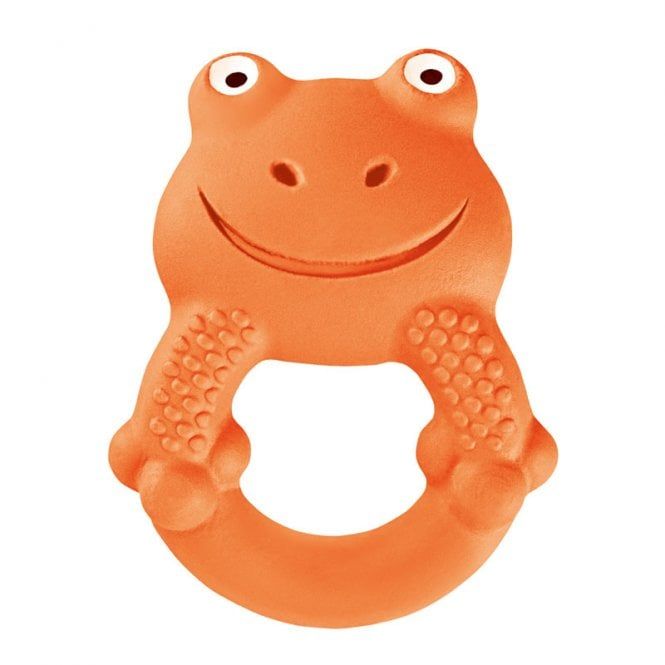 Käsintehty Ainu MAM Max the Frog purulelu houkuttelee vauvaa leikkiin iloisella ja värikkäällä ulkomuodollaan. Sammakon erilaiset pinnat tukevat vauvan aistien kehitystä ja luonnonkumista lelua on ihana puristella sekä maistella.