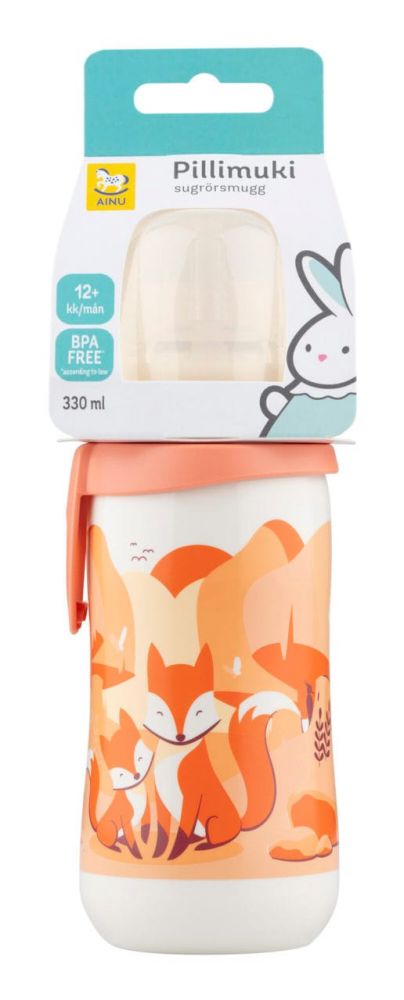 Ainu Pillimuki taaperon juomahetkiin. Muki on erittäin helposti puhdistettava Pillimuki, jossa on vuotamaton imuosa. Ainu Pillimuki kulkee mukana niin pienen taaperon hoitolaukussa, kun isomman harrastuksissakin. Mukia voidaan käyttää myös ilman pillivartta ”sporttimukina” ja muki on helppo puhdistaa käytön jälkeen.