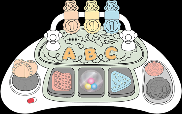 -Auttaa lastasi opettelaamaan kävelyä ja stimuloi lapsen aisteja musiikilla, äänellä ja valolla.