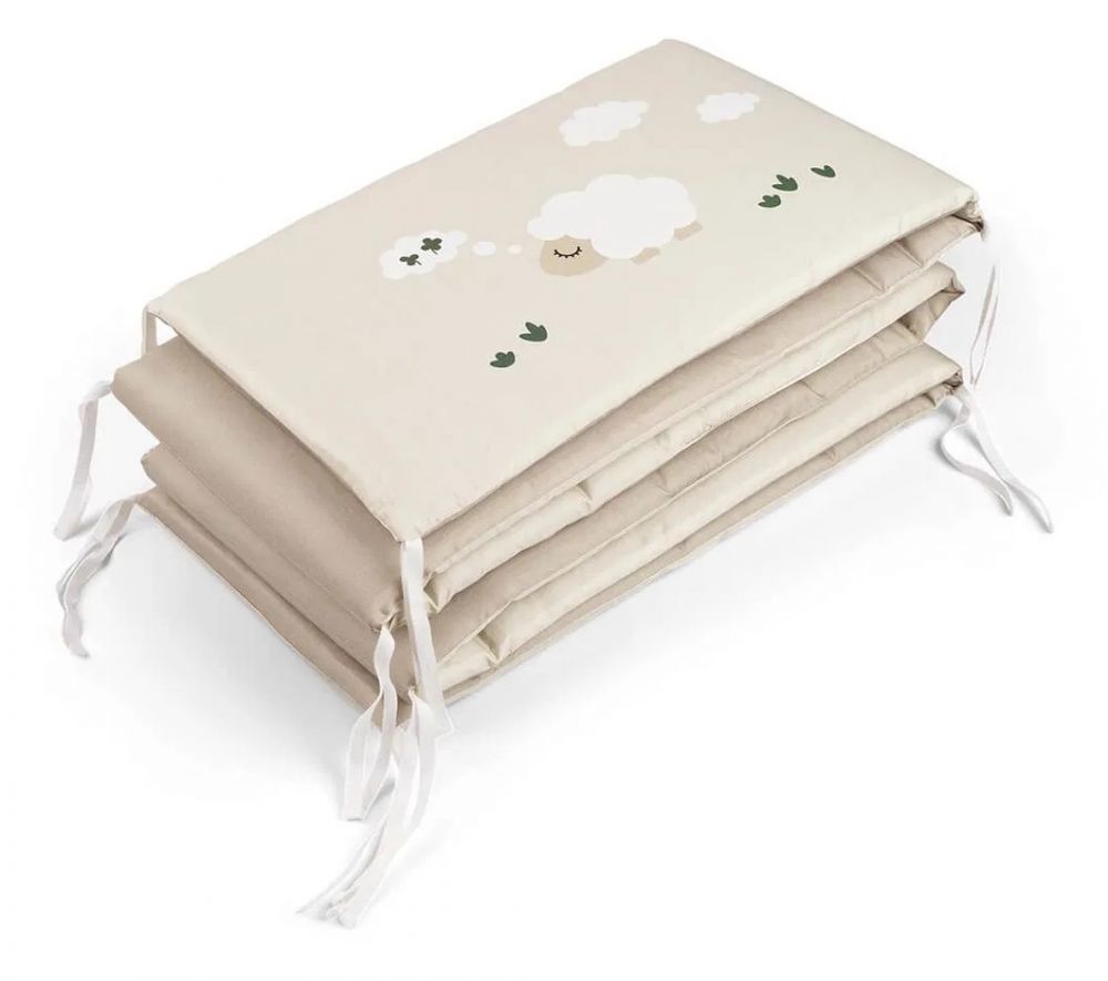 Valkoinen reunapehmuste on kuvioitu kauttaaltaan Dreamy Dots -kuosilla, joka on yhteensopiva muiden Dreamy Dots -sarjan vuodetekstiilien, unipussien ja hoitotuotteiden kanssa.