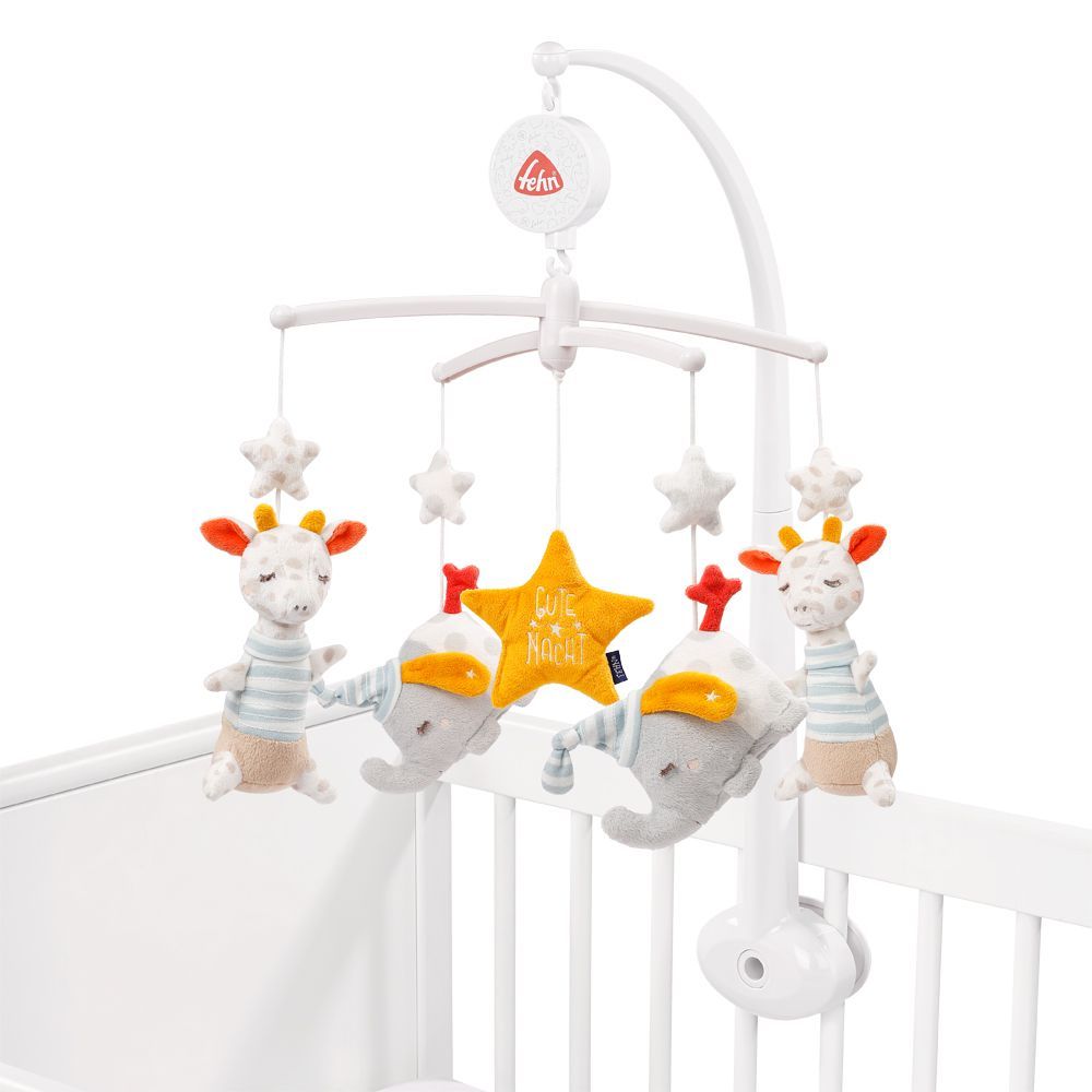 Viehättävä katselulelu pinnasängyn laitaan. FEHN Gute Nacht -mobile hohtaa pimeässä!
