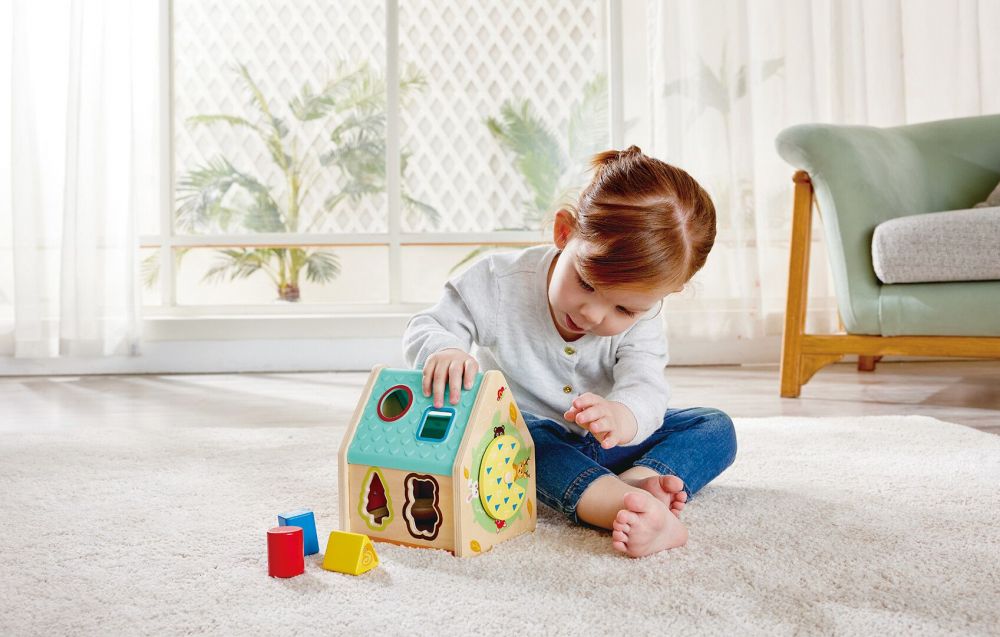 Kaunis lajittelulaatikko, joka kehittää silmän ja käden koordinaatiota sekä auttaa värien ja erilaisten muotojen opettelussa.