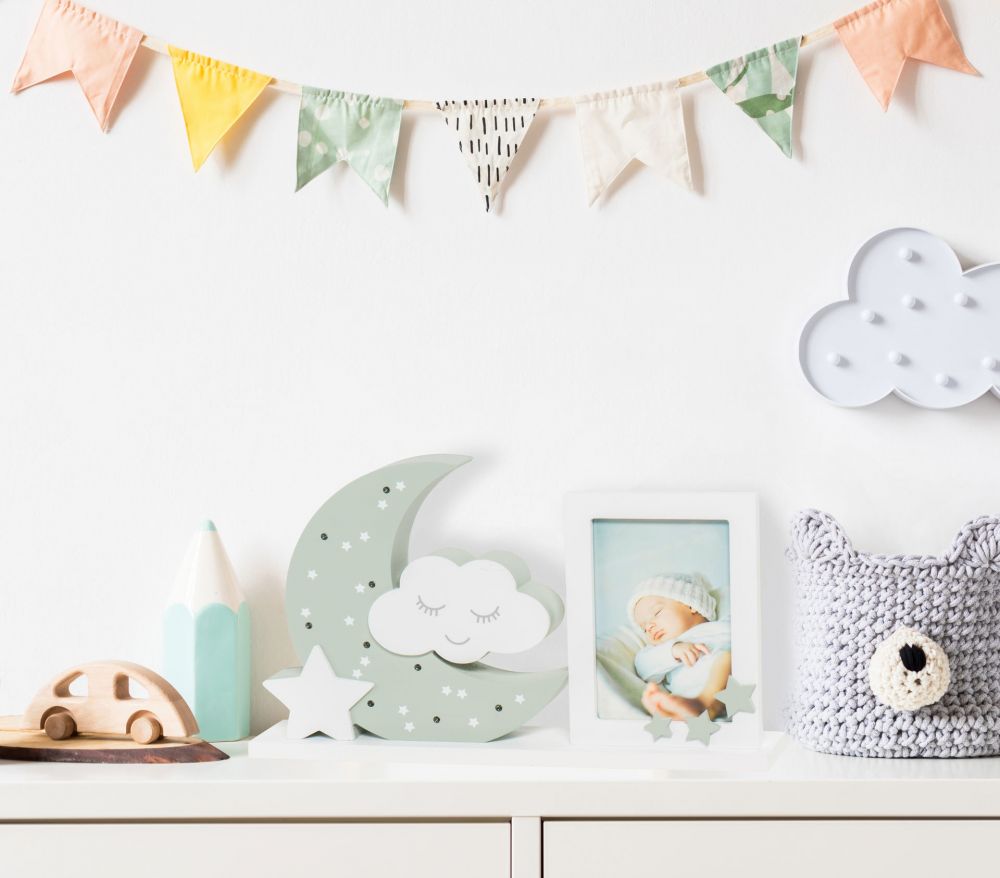 * tyylikäässä kehyksessä tähti, hauska pilvi ja kuunsirppi, jossa