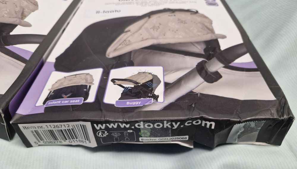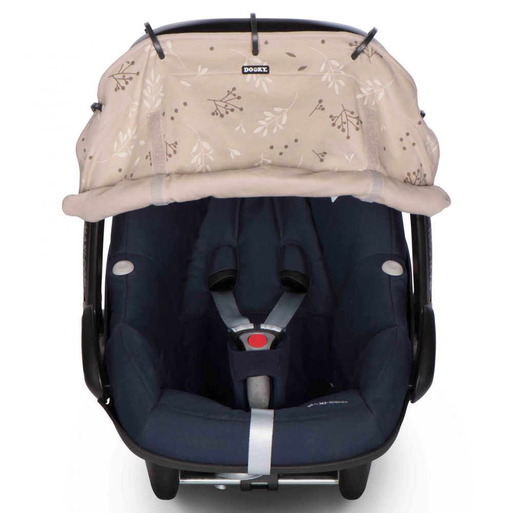 Dooky Universal Cover voidaan helposti asentaa kantokoppaan, turvakaukaloon, lastenrattaisiin tai -vaunuihin. Se luo lapselle hiljaisen ja rauhallisen ympäristön, sekä suojaa kirkkaalta valolta ja auringolta.