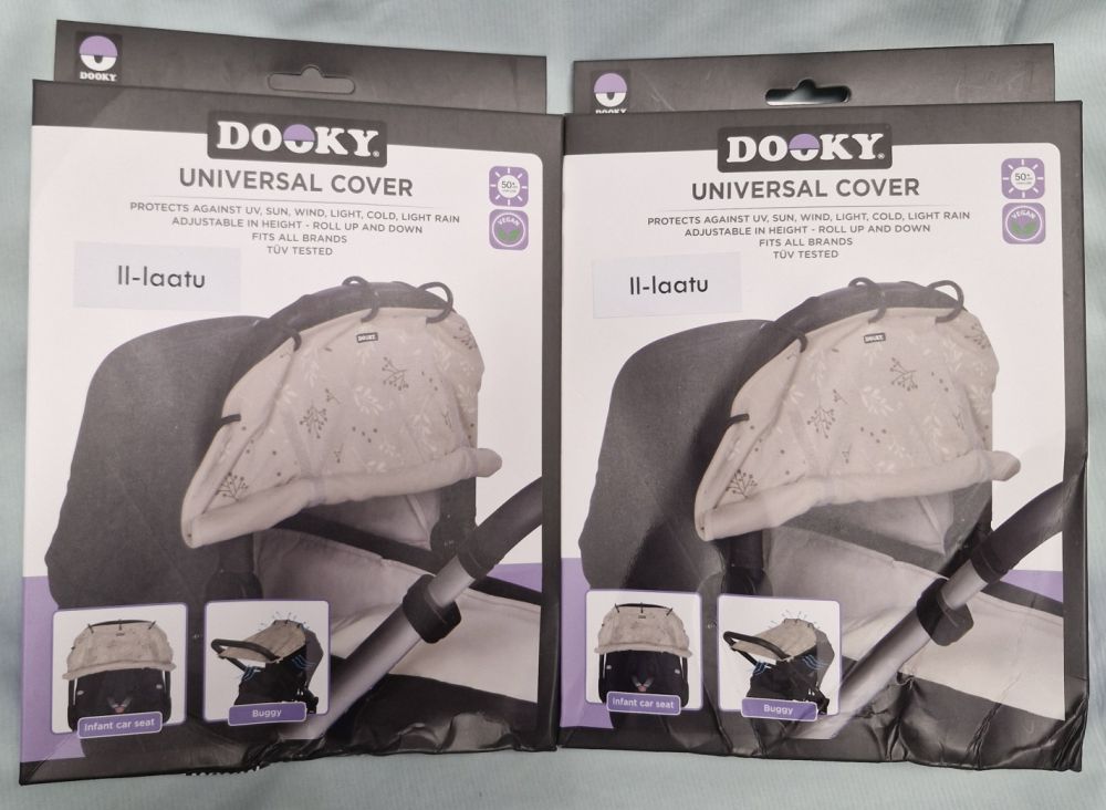 Dooky Universal Cover on valmistettu 100% puuvillasta, se on konepestävä ja siinä on erinomainen UVF40+ suojakerroin, joka estää yli 95% haitallisista UVA ja UVB- säteistä.