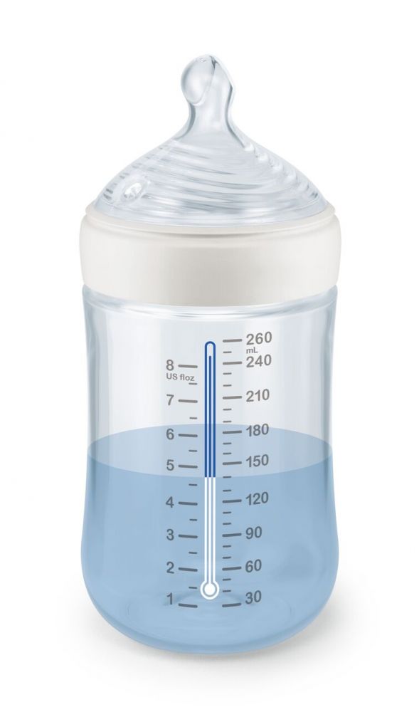 NUK Nature Sense Temp Control TUTTIPULLO 260 ml, VALKOINEN