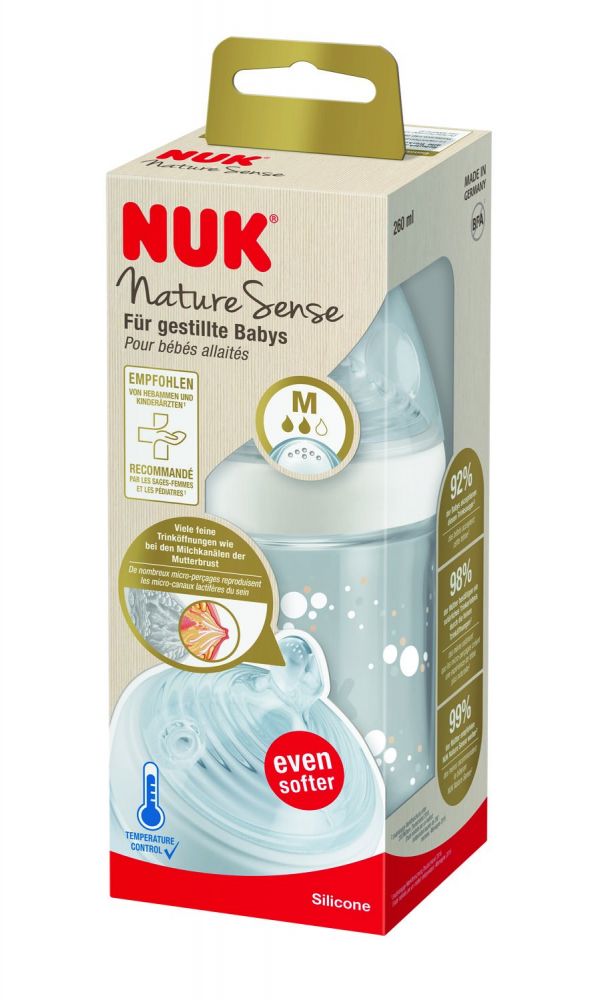 NUK pitää Nature Sense Tuttipulloa parhaana pullonaan ja testi tuloksien* mukaan myös vauvat ja vanhemmat ovat samaa mieltä; 92% vauvoista hyväksyi luonnollisen näköisen pullotutin, 99% äideistä suosittelisi Nature Sense sarhaa muille, ja 98% äideistä vahvisti, että pienet juoma-aukot luovat luonnollisen juomakokemuksen.